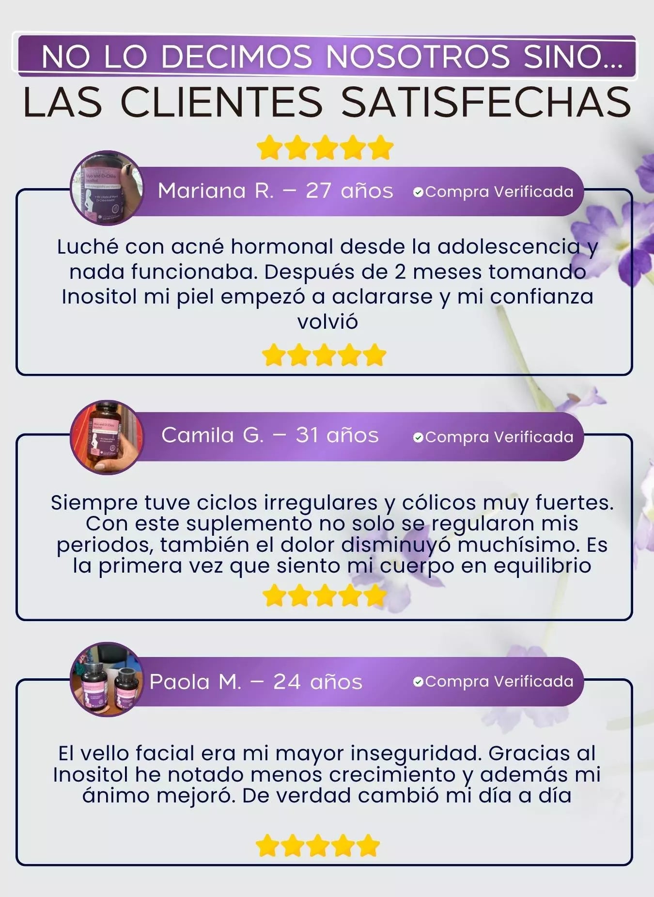✅ Piel más limpia y fresca – Actúa sobre el acné hormonal desde la raíz, devolviendo claridad y confianza en tu imagen.