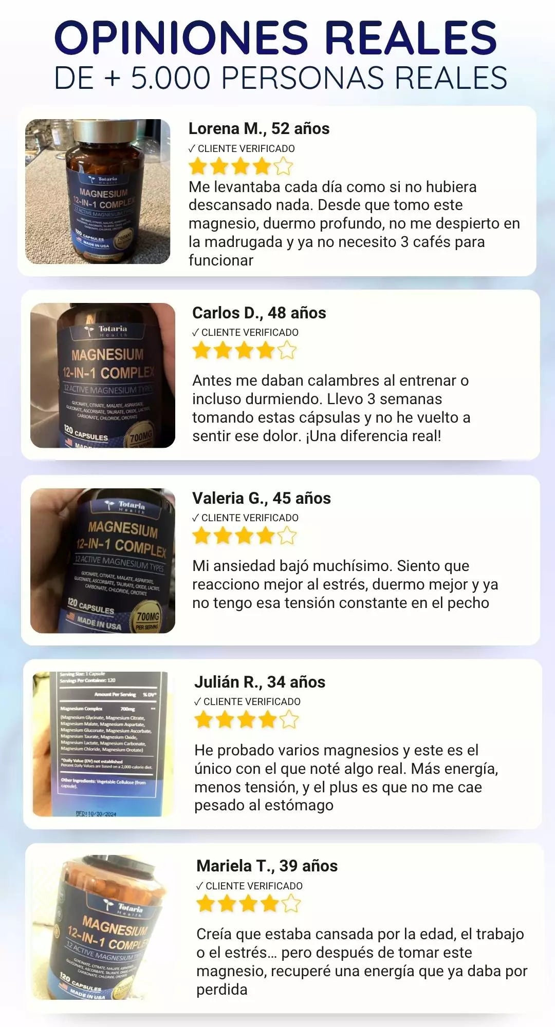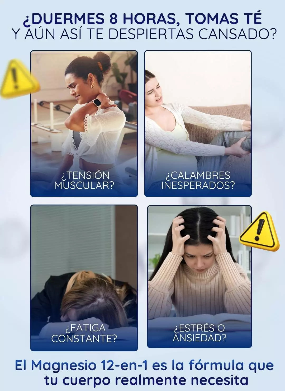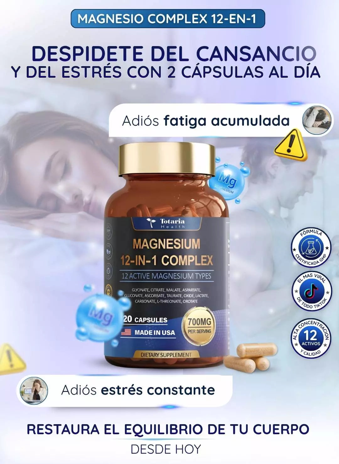 No. Esta fórmula integra 12 tipos activos de magnesio en una sola mezcla, diseñada para ofrecer soporte integral.